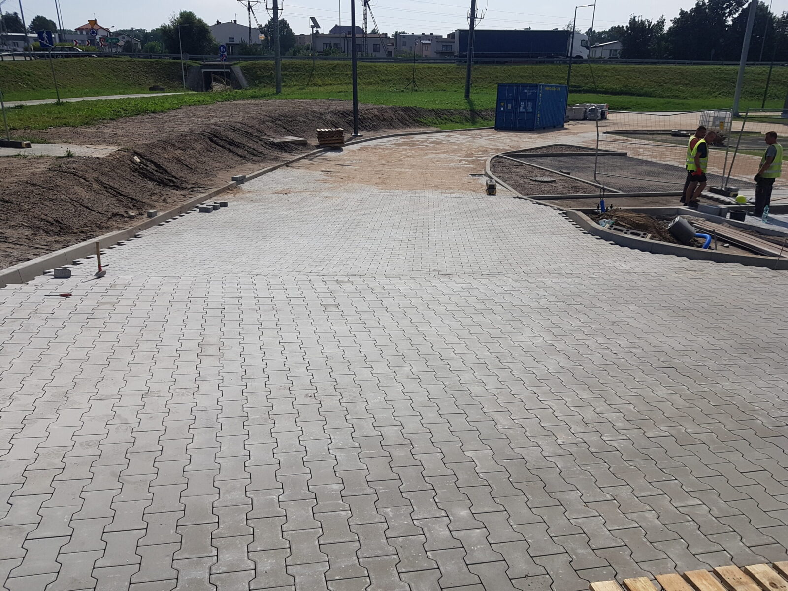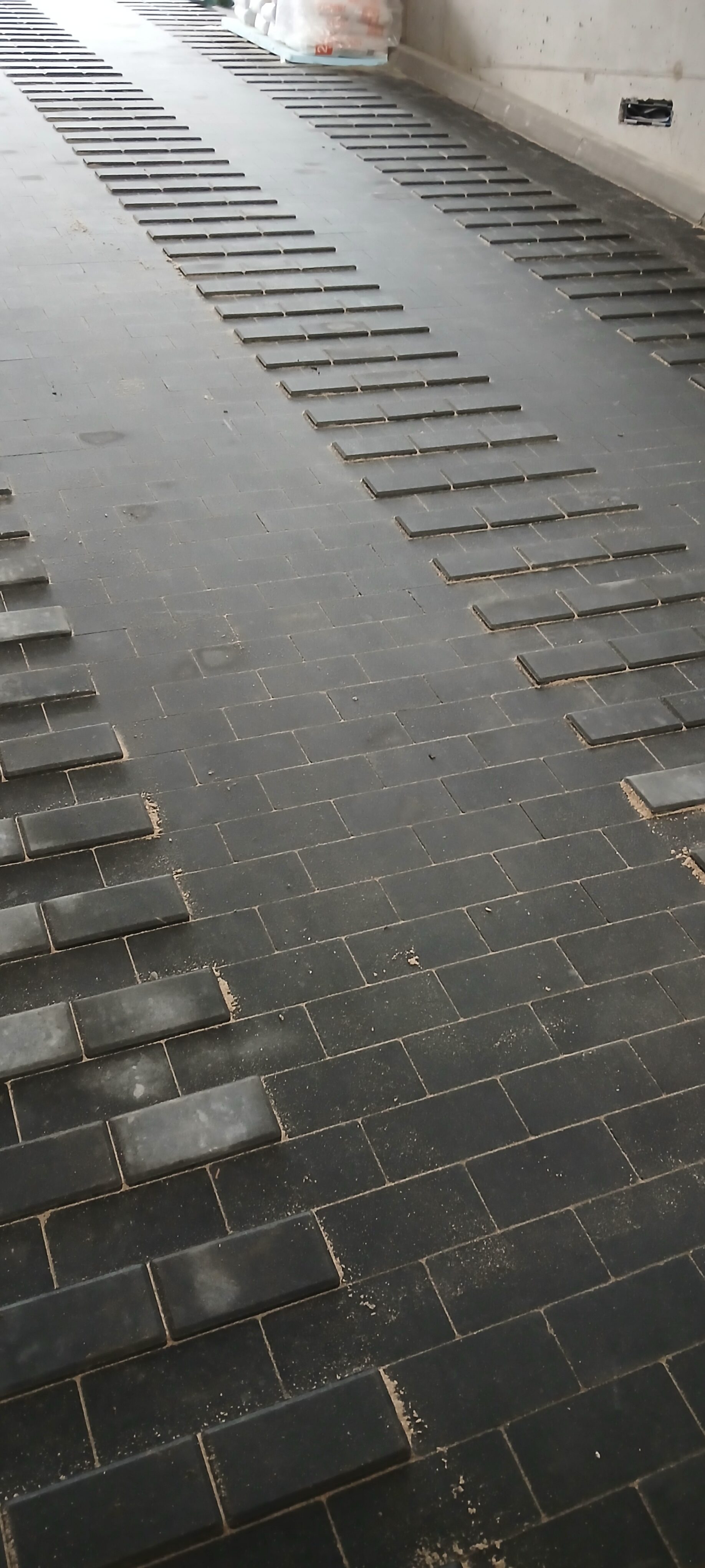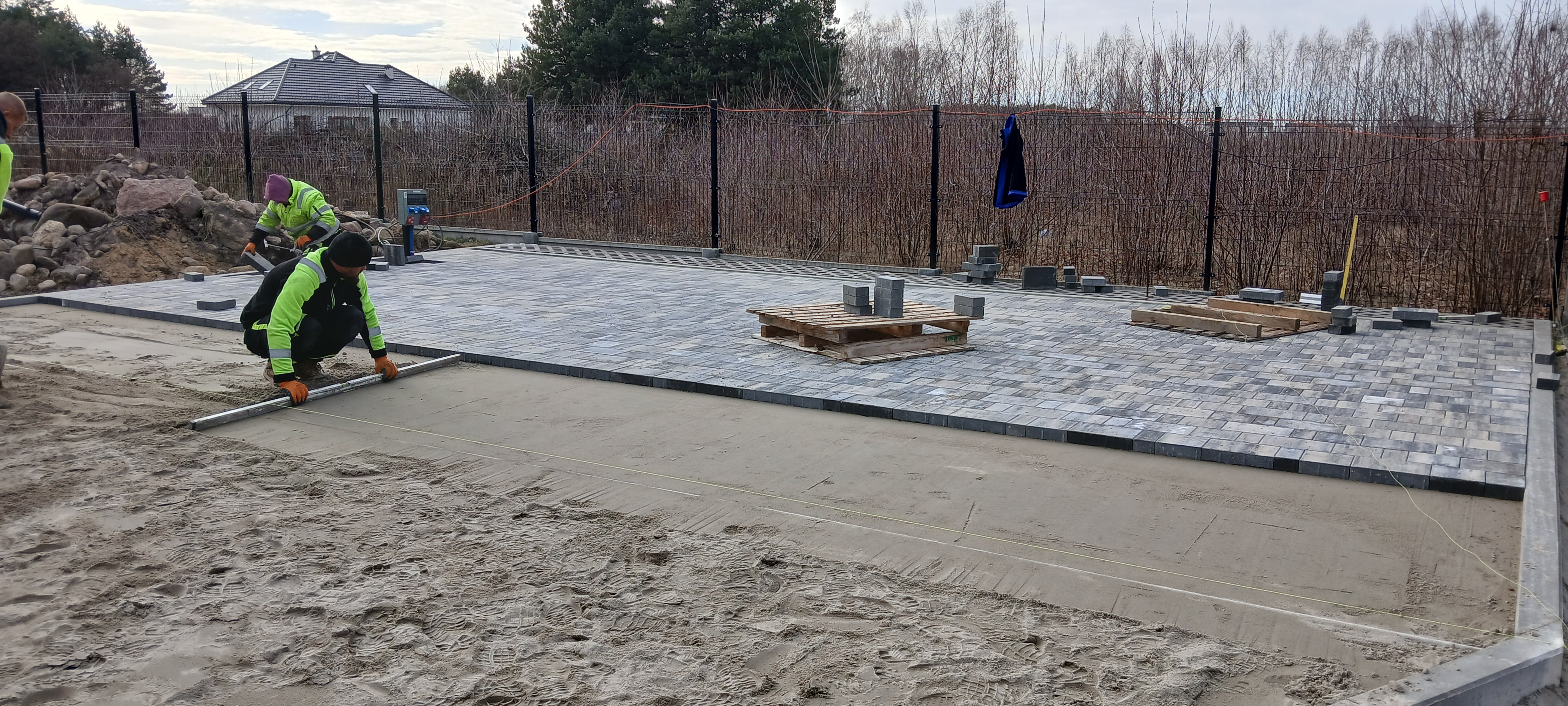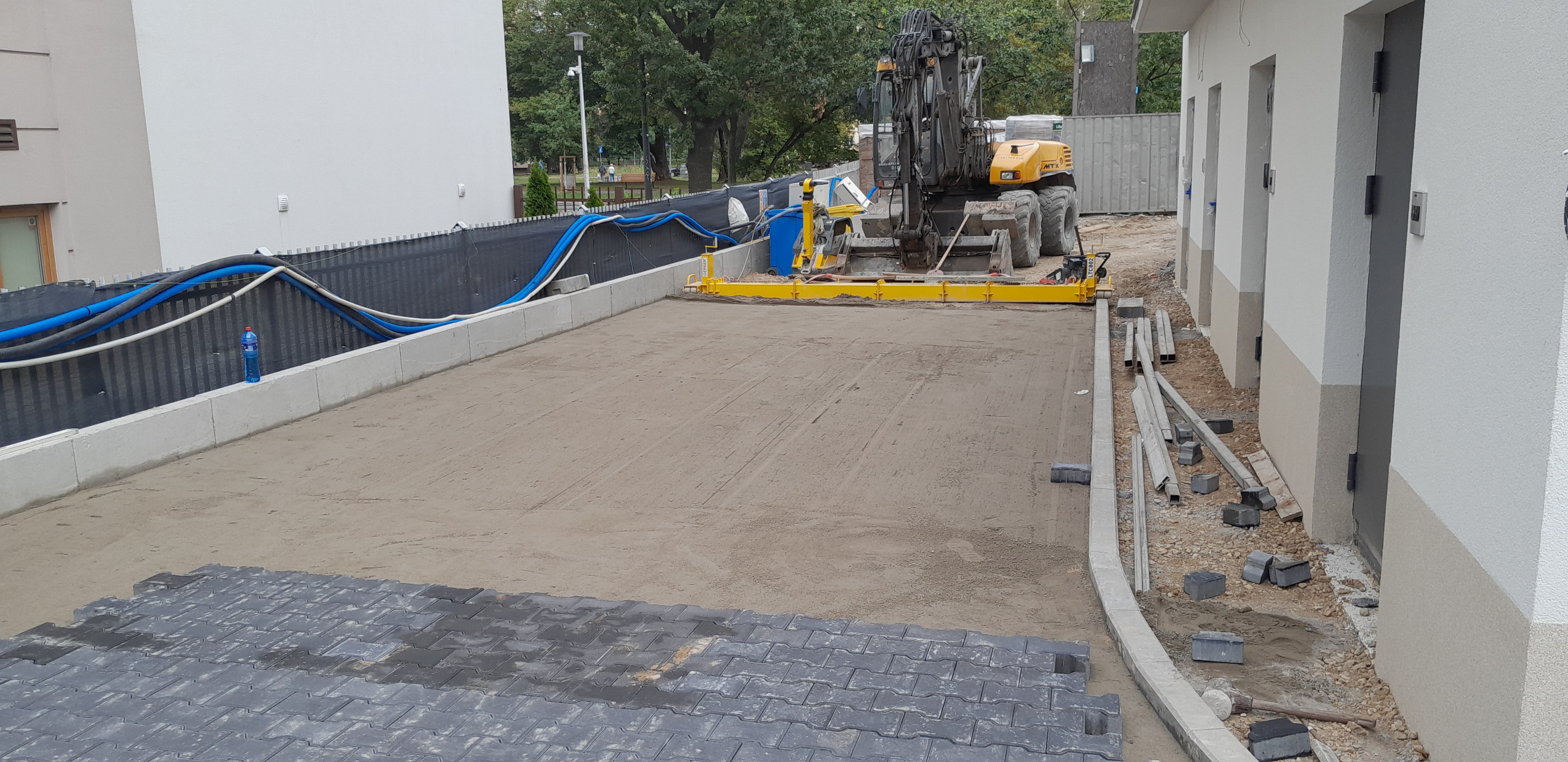 Pełen zakres prac związanych z korytowaniem, przygotowaniem podłoża, naniesieniem ewentualnych spadków i wysokości, podsypką, stabilizacją, badaniem kruszywa płytą VSS, ułożeniem kostki.