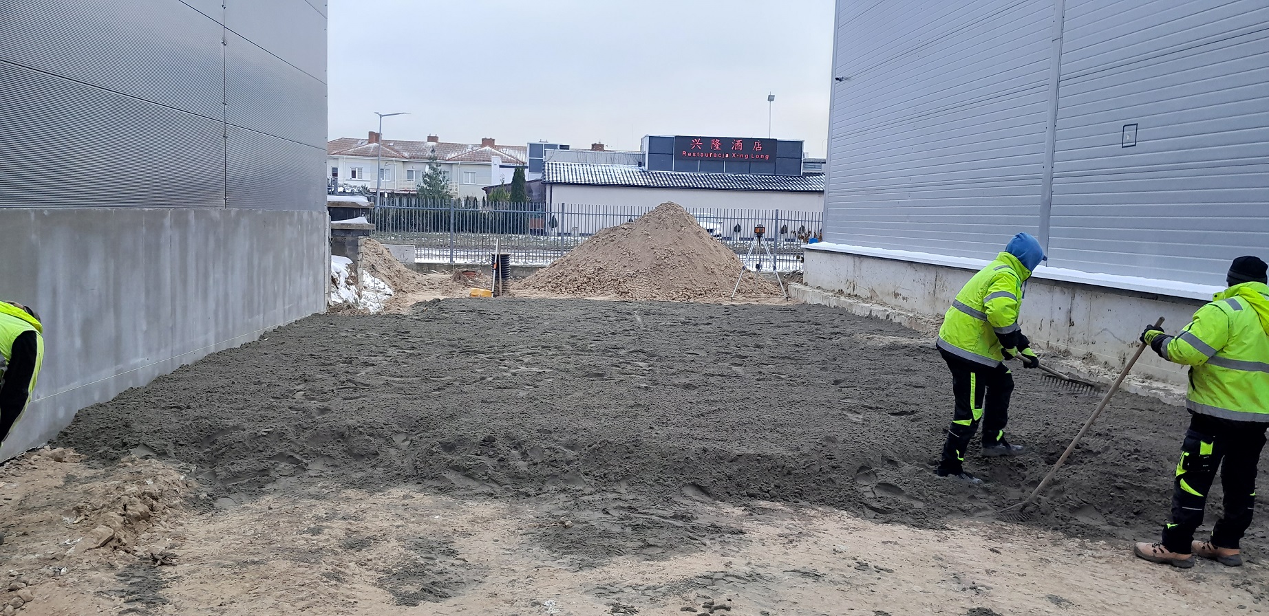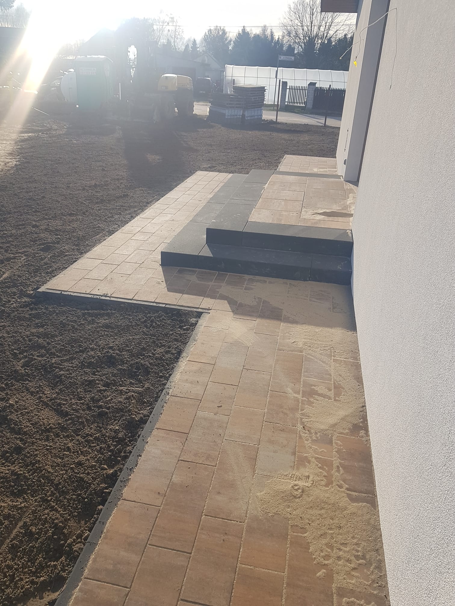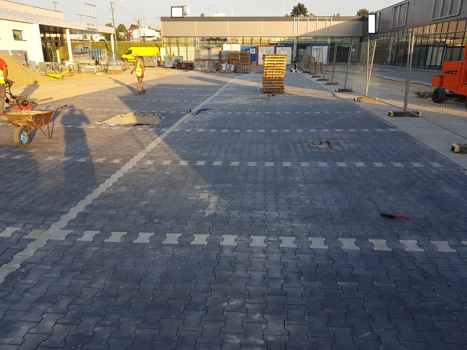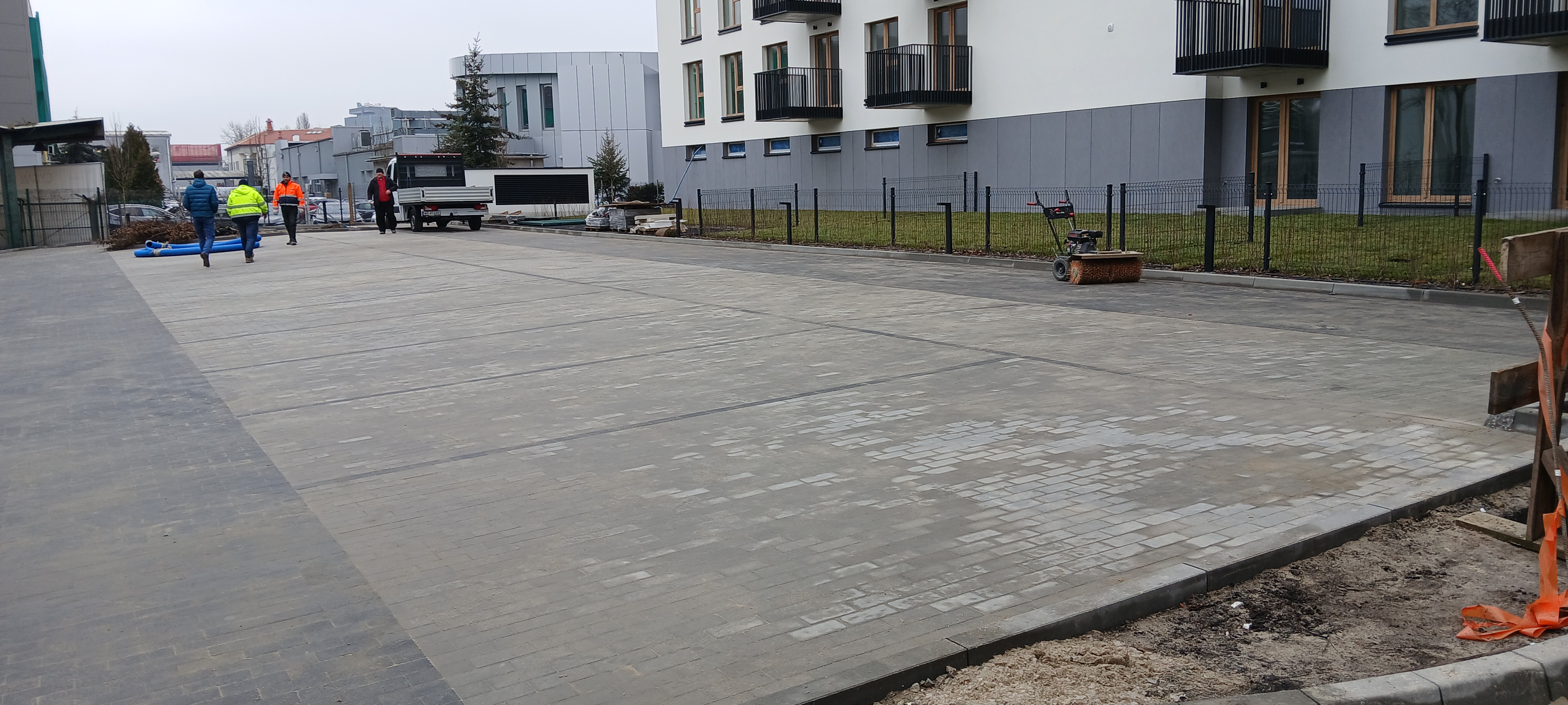 Pełen zakres prac związanych z korytowaniem, przygotowaniem podłoża, naniesieniem ewentualnych spadków i wysokości, podsypką, stabilizacją, badaniem kruszywa płytą VSS, ułożeniem kostki.